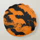 Black Bats In Flight Orange Round Cushion