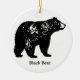 A black bear appears in this line art illustration. The black bear is North America's most common bear species. These dark-coloured bears feed on grasses, berries, nuts, insects, and other foods.