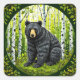 Black Bear in a Birch Forest Square Sticker