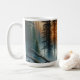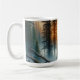 This captivating image features a majestic black bear making its way across a fallen tree, framed by a cathedral of towering evergreens. As the golden light of sunrise pierces the morning mist, it casts a soft, ethereal glow that brings the forest to life.