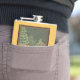 The flask itself is fine. It’s a cheap flask, obviously bought in bulk, however am prepared to overlook that. Given that it is a personalized item, I would have liked to have seen gift boxing instead of the generic packaging. Terrible printing, and/or quality. It’s a cheap, tacky vinyl. It is not cut straight and is also applied in a way that it is overhanging the bottom, causing the glue to catch on items and it will eventually roll and tear, damaging the wrap.