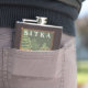 The flask itself is fine. It’s a cheap flask, obviously bought in bulk, however am prepared to overlook that. Given that it is a personalized item, I would have liked to have seen gift boxing instead of the generic packaging. Terrible printing, and/or quality. It’s a cheap, tacky vinyl. It is not cut straight and is also applied in a way that it is overhanging the bottom, causing the glue to catch on items and it will eventually roll and tear, damaging the wrap.
