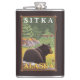 Black Bear in Forest - Sitka, Alaska Hip Flask