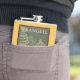 The flask itself is fine. It’s a cheap flask, obviously bought in bulk, however am prepared to overlook that. Given that it is a personalized item, I would have liked to have seen gift boxing instead of the generic packaging. Terrible printing, and/or quality. It’s a cheap, tacky vinyl. It is not cut straight and is also applied in a way that it is overhanging the bottom, causing the glue to catch on items and it will eventually roll and tear, damaging the wrap.