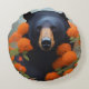 Black Bear in Orange flowers Round Cushion
