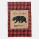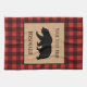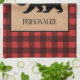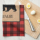 Black Bear On A Red And Black Plaid Personalised Tea Towel