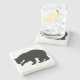 The coasters are gorgeous, a quality feel and heavy weight. They look like a precious archeological find. A rustic stone juxtaposed with a modern floral black and white print. I like the way the print goes slightly imperfect on the cut stone edges giving them a kind-of natural beauty.
