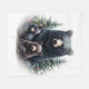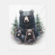 wildlife illustration featuring a Black bear family with cubs sitting among forest elements like trees, berries, and pinecones
