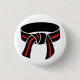 Collectable Karate Tae Kwon Do all Martial Arts pinback button badges. This one features a black belt with red stripe. Collect them all!