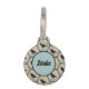 I looked through a lot of pet stores and web sites then I saw Zazzle and a tag with guitars in the background so we added his name and photo o nether front and our phone numbers on the back. It was beautiful and unique just perfect