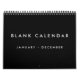 It's 12 months (January - December) black blank calendar with holidays (United States events and holidays) and customisable text on front page.