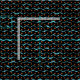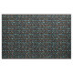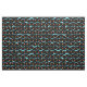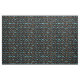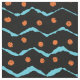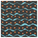 A fresh modern abstract pattern with distressed blue zigzags and orange dots on a black background.