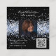 A black background. Decorated with light blue faux confetti. Personalise and add your name, title, profile photo, phone number, mail, website adsress, qr code to your website or social media account.