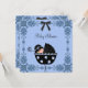 Adorable black and blue baby boy shower invitations. This blue and black baby shower invitation features a sweet baby boy in a black and blue carriage with an elegant edge and black bow and is easily customised for your event by simply adding your event details, font style, font size & colour, and wording.