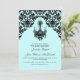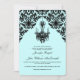 This stylish pale blue and black damask chandelier wedding invitation would be ideal for a formal wedding. The text and paper type is all customisable. If you require any other matching items, please email your request to niteowlstudio@gmail.com.