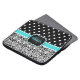 Elegant black and white damask pattern with polka dot pattern. This trendy girly gift features a black, blue and white nameplate for your customisable name and monogram. This would make a cool birthday gift for girls or Christmas present for her.