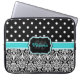 Black Blue Monogrammed Damask Polka Dot Laptop Sleeve