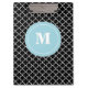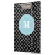 Show off your style in a fun way with this black and light blue quatrefoil modern and trendy personalised clipboard.