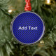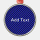 Black Blue Thin Diagonal Stripes Metal Ornament