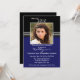 Start off you event right with our elegant black, white & blue photo graduation invitation. Perfect graduation invitation for a high school graduation or college graduation. Just fill in your information and add your photo and you're all set to go.