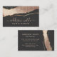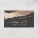 Make a bold and sophisticated statement with this stunning business card. The dramatic black background is adorned with a shimmering blush and gold wave pattern, creating a luxurious and eye-catching design. Your name and services are elegantly displayed in a delicate blush pink script, ensuring a lasting impression on potential clients. Perfect for hair stylists, makeup artists, and other beauty professionals who want to showcase their style and expertise.