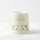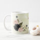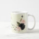 Beautiful romantic mug featuring black and blush pink flowers and some pretty leaves .
