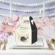 Beautiful romantic wedding favour box featuring black and blush pink flowers and some pretty leaves .