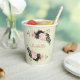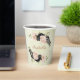 Beautiful romantic paper cup featuring black and blush pink flowers and some pretty leaves .