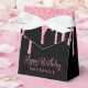 Elegant Black and Blush Pink Sparkle Glitter Drips Birthday Party Favour Boxes featuring faux glitter drips on a chic black background. Designed by Cedar and String. To personalise further, please click the "customise further" link and use the design tool to modify the design. If you need assistance or matching items, please contact us at cedarandstring@gmail.com . Perfect for your luxury aesthetic!