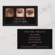 Elevate your professional image with this sleek black business card designed for the modern makeup artist. Three photo spaces across the top let you showcase your artistry or favourite client looks. On the back, list all your social media. This card promotes your beauty brand with style and confidence.