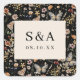 Black Boho Floral Wedding Square Sticker