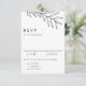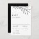 Black Boho Minimalist Foliage Wedding RSVP Card