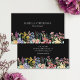 A modern, elegant business card design with a classic black background and, at the bottom, there is a colourful border of watercolor spring wildflowers. The modern, white typography can be easily customised with your name and business details.