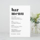 Add these customisable bar menu card stationery to your event tablescape. It features bold retro typography and simple typography in black. This modern bar menu card is perfect for weddings, bridal showers, baby showers, and so much more.