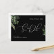 Wedding Save the Date. White typography. Elegant. Botanical. Black. Postcard.