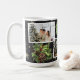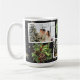 Beautiful photo collage Christmas mug featuring holly, berries, pine cones, branches, snowflakes and falling snow. Easily personalise this botanical Christmas mug with your photos.