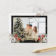 Celebrate the winter holidays with this black photo Christmas postcard featuring a watercolor painting of poinsettia, holly and red berries. Easily personalise this holiday postcard with your photo and text.