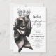 Modern black watercolor bow and crown elegant style birthday invitation template. Elegant-minimalistic themed invite is full of fun and cute design elements.