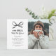 Express your pride and joy for the upcoming graduate in your life with our elegant graduation party invitations. Crafted with a simple white background, eye-catching black watercolor bow and a personalised photo of the graduate, these invitations stand out from the crowd. The playful pun 'you did it, way to bow' adds a touch of humour, while the modern text template allows for easy customisation. It's the perfect blend of chic design and personal touch for celebrating this special milestone.