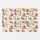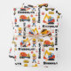 Detailed Construction Worker wrapping paper featuring a multicultural girl construction worker directing a Girl driving a dump truck, cement mixer and excavator. This custom name gift wrap is perfect for any occasion. Any Occasion Wrapping Paper for Kids.