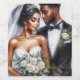 This label features bridal watercolor artwork of a dark-brown skinned couple.