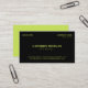 Minimalistic one-sided business card with bright lime green fonts against black, with the other side blank lime green. Make a bold statement with a black business card with neon lime green fonts! This eye-catching card is sure to get noticed, and it's perfect for any profession or gender. The black background and neon green fonts create a modern and professional look that will leave a lasting impression on your potential clients.