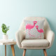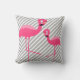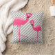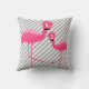 BLACK BRIGHT PINK FLAMINGO White Grey Stripe Cushion