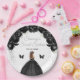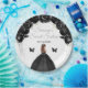 This elegant and glamourous sweet sixteen plate features a beautiful princess with brown hair in a black ball gown. The text combines handwritten script and modern sans serif fonts for a classy and sophisticated look. The floral arrangements, butterfly and silver confetti create the perfect blend of rustic and chic.
