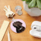 This cute keychain features a portrait of a beautiful brownish black Labrador Retriever with a crisp whitish pink background.