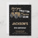 Black Brown Tractor Birthday Invitations