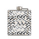 The flask itself is fine. It’s a cheap flask, obviously bought in bulk, however am prepared to overlook that. Given that it is a personalized item, I would have liked to have seen gift boxing instead of the generic packaging. Terrible printing, and/or quality. It’s a cheap, tacky vinyl. It is not cut straight and is also applied in a way that it is overhanging the bottom, causing the glue to catch on items and it will eventually roll and tear, damaging the wrap.