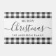 Custom-designed doormat featuring "Merry Christmas" modern typography design with your family name on festive black and white buffalo check pattern.
