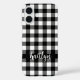 Personalised black and white buffalo check plaid case personalised with your name or custom text. The font style, size and colour can be changed by clicking EDIT. ASSISTANCE: For help with design modification or personalisation, colour change, resizing, transferring the design to another product or if you would like coordinating items, contact the designer BEFORE ORDERING via the Zazzle Chat MESSAGE tab below or email makeitaboutyoustore@gmail.com.