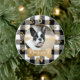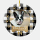 Black Buffalo Plaid Pattern Gold Bow Family Photo Ceramic Ornament